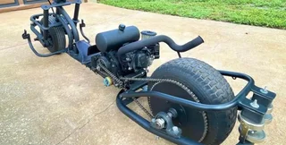 Мотоцикл виготовлений з готових деталей, які умілець з'єднав разом. Трубчаста рама виготовлена на замовлення.