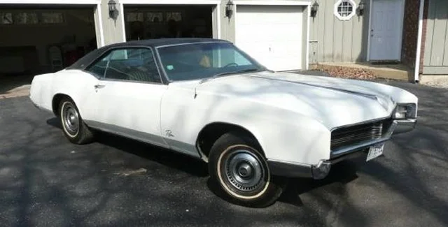 Цей Buick Riviera пофарбований у білий колір і має чорний вініловий дах. Зовні він не відрізняється від стандартного автомобіля.