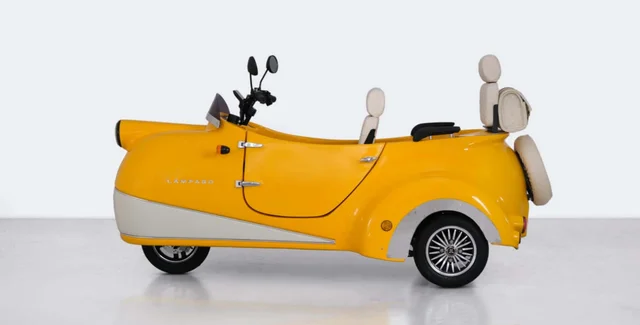 Електричний скутер Lampago нагадує мотоциклетний візок 50-х років. У нього є двері і задній багажник.