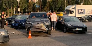 Як інформують місцеві пабліки, у столиці зіткнулися новий Lexus LX, дві Tesla і Ford Mustang. Свідки стверджують, що бачили в салоні позашляховика блогерку Дашу Квіткову.