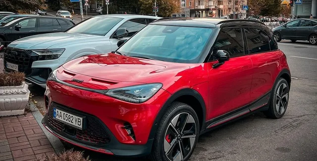 До Києва приїхав топовий кросовер Smart #1 Brabus (в Україні він коштує від $38 000) — його можна впізнати за обвісом, збільшеним заднім спойлером і 19-дюймовими дисками. Він оснащений повним приводом і двома моторами загальною потужністю 428 к. с.