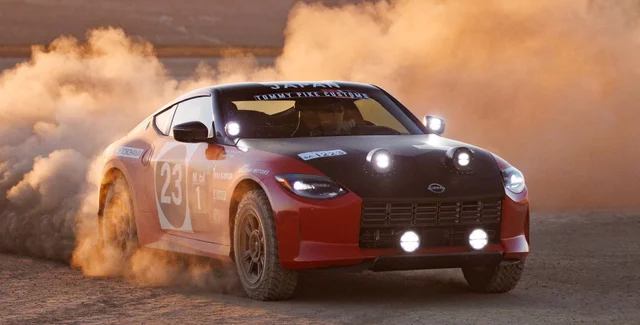 Купе Nissan Z перетворили на ралійний спорткар. Йому збільшили кліренс, встановили позашляхові шини і додаткову оптику.
