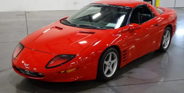 Цей Chevrolet Camaro Callaway C8 1995 року пофарбований у червоний колір Torch Red. Передня частина стала більш обтічною порівняно зі стандартною моделлю.