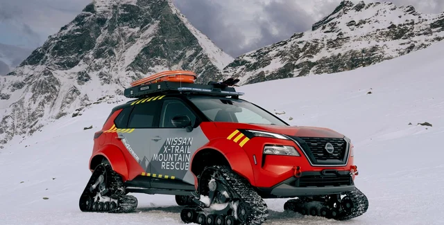 Новий Nissan X-Trail Mountain Rescue поставили на гусениці, що істотно поліпшило його прохідність. Кросовер отримав лебідку, додаткову оптику і багажник на даху.