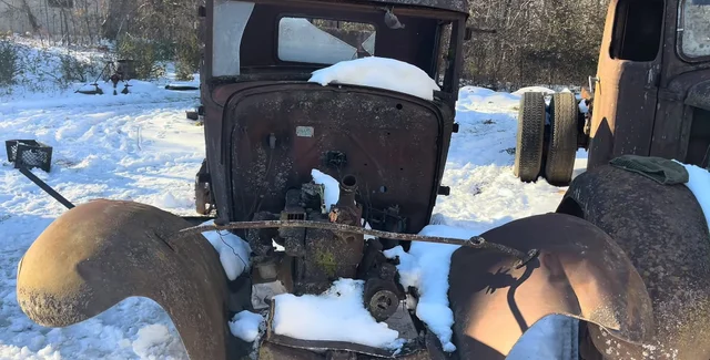 Проте двигун Ford AA більш-менш цілий. Він забитий брудом, а в картері зібралась та замерзла вода, тому його довелося знімати, розбирати чистити та навіть розморожувати лід з допомогою вогнища.