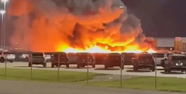 Вогонь швидко розповсюдився по паркінгу з новенькими Rivian R1T та R1S. Пожежники приїхали досить швидко і завдяки їхнім діям вогонь не перекинувся на заводські цехи та був локалізований.
