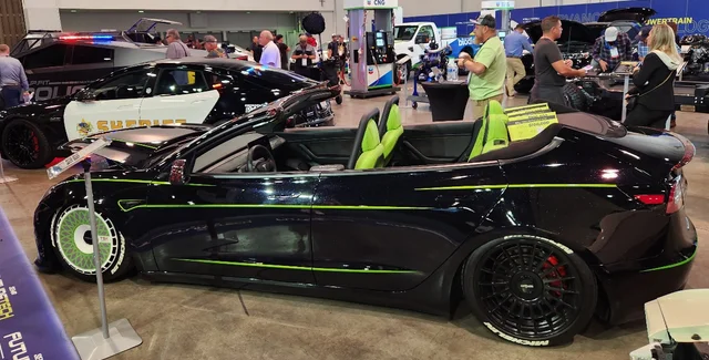 На тюнінг-шоу SEMA в Лас-Вегасі показали унікальний кабріолет Tesla Model 3. Електромобіль створили українські майстри. Про це повідомляє сайт Autogeek.
