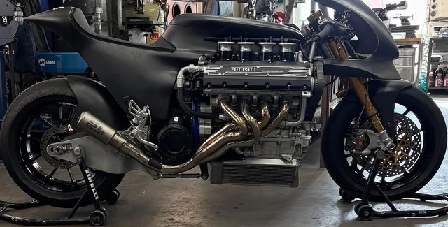 Американський конструктор вирішив збудувати спортбайк із високооборотним 3,5-літровим V8 від культового суперкара Ferrari F355 1995 року. Потужність двигуна збільшили з 380 до приблизно 400 сил. У парі з ним працює 6-ступінчаста механічна КПП. Також встановлено гучний кастомний вихлоп від SC Project.