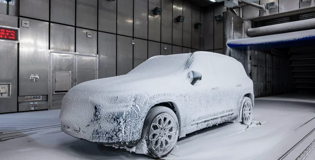 Зовні електромобіль Mercedes GLB показали під час кліматичних тестів. Кросовер покрився кіркою льоду, тому можна розгледіти лише його силует, який залишився знайомим. Дизайн буде витриманий у дусі нового Mercedes CLA, з яким електрокросовер ділить платформу MMA.