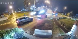 Румунські ЗМІ поширюють відео ДТП з камери відеоспостереження в місті Орадя. Водій Mercedes втратив керування та "перелетів" через дві автівки на кільцевій розв'язці.