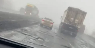 Проблемні ділянки траси з'явилися з початком потепління, коли почав танути сніг, тому в соцмережах жартують, що "сніг пішов разом з асфальтом". Деякі відрізки дороги водії змушені об'їжджати зустрічною смугою, що підвищує ризик аварій.