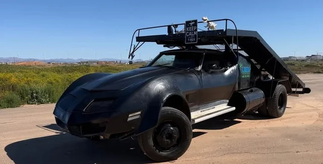Для доопрацювання взяли Chevrolet Corvette 1981 року — точніше, його склопластиковий кузов. Передню частину спорткара встановили на шасі евакуатора на базі пікапа Chevrolet C30.