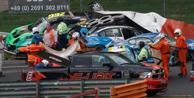 ДТП сталася на 25-й хвилині чотиригодинних перегонів. В одному з поворотів Нюрбургрингу зіштовхнулися авто, а потім у них на великій швидкості врізалися ще кілька машин.