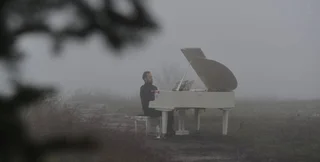 Мажинтас підвівся до нього в темному костюмі та бронежилеті. Попри проблемну погоду — того дня стояв туман і було вогко — піаніст давав концерт близько години.