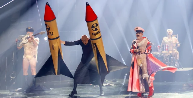 Учасники групи виступають у барвистому вбранні, що скидається на військову форму, а у фіналі один із них з'являється з муляжами ядерних ракет.