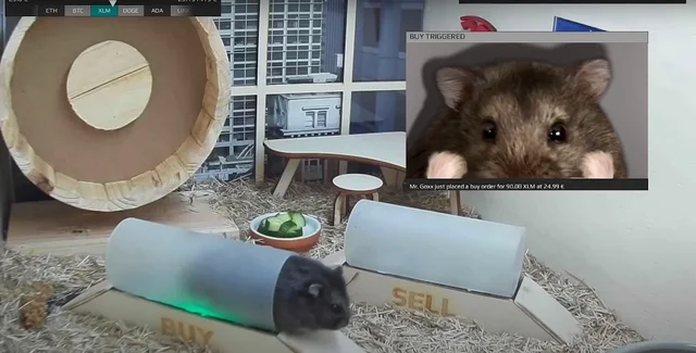 Анонімний користувач мережі обладнав в клітці свого хом'яка спеціальну кімнату, в якій встановив дві пластикові труби і бігове колесо. Бігаючи по колесу, Містер Гокс випадково вибирає одну з 30 криптовалют, включаючи біткоіни, Tron, Ripple's XRP і Сardano. Датчики руху в правому тунелі змушують програму, встановлену на комп'ютері, купувати вибрані токени, а в лівому — продавати. Таким чином тварина здійснює торговельну операцію з кроком в 20 євро кожен раз, коли пробігає по одній з пластикових трубок.