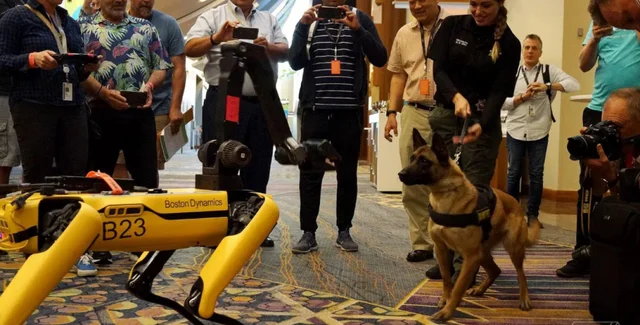 Вівчарка проявила неабиякий явний інтерес до чотириногих "вихованців" Spot і навіть хотіла з ними познайомитися.