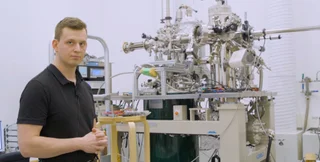 Докторант Університету Аалто Вілліам Ваньо перед квантовою установкою | Фото: Скриншот