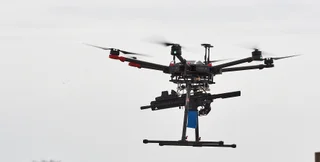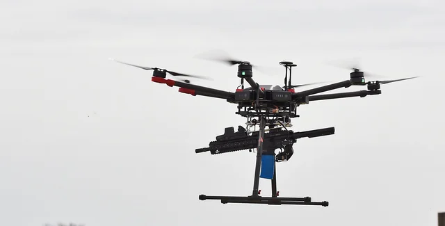 Пресслужба розмістила фотографію дрона, що літає за допомогою шести гвинтів (такі називаються гексакоптерами). У нижній частині можна побачити закріплену автоматичну гвинтівку HK416 від німецької компанії Heckler & Koch, цю модель адаптовано під американську модульну систему AR-15, і її використовують війська НАТО.