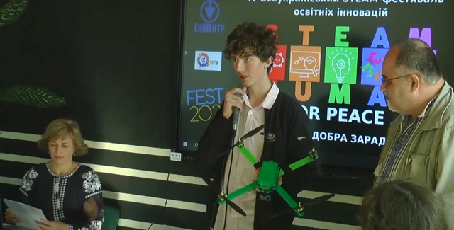 Учень одинадцятого класу природничо-математичного ліцею в Івано-Франківську вирішив зробити пристрій для пошуку мін. Спочатку Юрій Тумир пробував зібрати сухопутну машину, але після низки експериментів дійшов ідеї квадрокоптера, надрукованого на 3D-принтері. Саме цей апарат молодик представив на IV Всеукраїнському STEAM-FEST, де педагоги й учні показують цікаві проєкти.