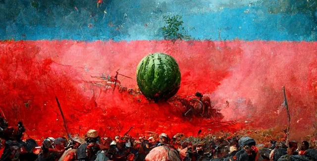 Гигантские арбузы разгромили ВС РФ: нейросеть MidJourney нарисовала битву за Херсон