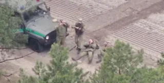 Білоруські солдати під керівництвом лейтенанта кілька хвилин марно намагалися влучити у БПЛА з автоматів Калашникова. У якийсь момент офіцер наказав військовим лягти на спину і стріляти з такого положення, що жодним чином не збільшило їхню точність.
