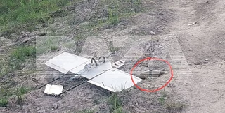 Telegram-канал Baza опублікувало фотографії безпілотника, який нібито збили на Брянщині. На одному зі знімків зображений невеликий планер білого кольору з прямокутними крилами та системою скидання в нижній частині фюзеляжу, поряд можна побачити боєприпас для РПГ. Медіа також показала уламки двигунів дрону-квадрокоптера з написом "ПТН ПНХ".