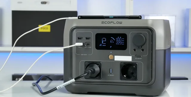 Модель має досить високу потужність, щоб живити більшість побутової техніки, важачи 6 кг. Цікава, але досить спірна перевага — можливість зарядки самої станції через порт USB-C. Корисна альтернатива на випадок, якщо основний мережевий кабель загубиться, але процес займе набагато більше часу. Маленький дисплей показує дуже багато інформації: рівень заряду, вхідну та вихідну потужність, час зарядки та розрядки. Головний недолік EcoFlow River 2 Max — дуже гучні вентилятори охолодження. Ще один мінус — станція не вимикається автоматично та поступово розряджається, якщо не натиснути на кнопку. Попри це, портал ExpertReview вважає станцію гарним вибором через оптимальну ціну та швидкий час зарядки від електромережі.