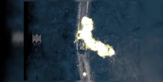 У ролику показано, що снаряд летить прямо в танк, після чого кадр засліпило через занадто яскравий і великий вибух. Техніка з особовим складом ЗС РФ палахкотіла і детонувала ще довго.