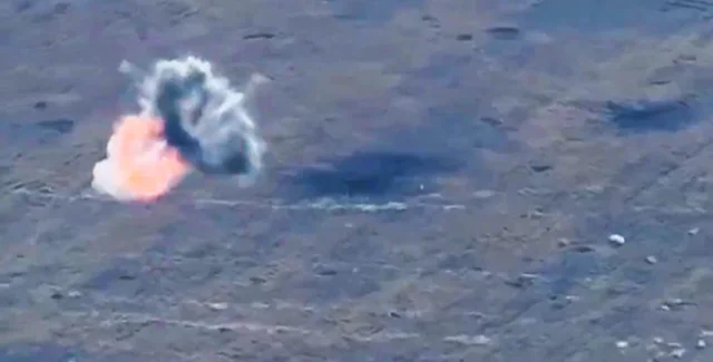 Дослідник війни повідомляє, що на відео показані дії 3-ї штурмової бригади поблизу Авдіївки у Донецькій області. У кадрі добре видно, як доволі високо над головами кількох військових РФ вибухає невідомий БПЛА. Унаслідок цього кілька окупантів падають, ймовірно, від ураження уламками. Добре видно результат влучання інших уламків у землю навколо.