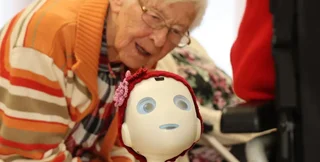 Мозок такого робота ґрунтується на штучному інтелекті: він може, наприклад, розповідати анекдоти, слухати історії з життя мешканців та ставити запитання.