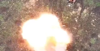 Українські військові спочатку пробили дроном-камікадзе захисні конструкції російського танка, а потім завдали по пошкодженій ділянці удару другим БПЛА.
