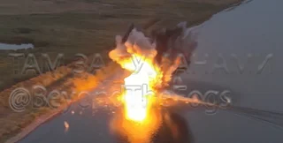 На відео видно, як безекіпажний катер рухається водоймою, а наблизившись до узбережжя — вибухає. Telegram-канал "VD:Розвідка Ворога" пише, що на цих кадрах зафіксовано випробування дрона в Херсонській області.