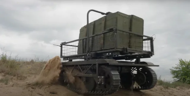 Своєю чергою російські окупанти також використовують безпілотні наземні засоби для доставлення боєприпасів і евакуюють поранених у прифронтових районах на сході України. Управляється вона дистанційно за допомогою FPV-окулярів і пульта.