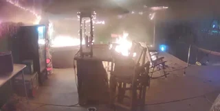Небезпечний випадок стався в середині жовтня в будинку Роберта Моузлі, який збирає кастомні автомобілі. Камера спостереження зафіксувала, як на терасі спалахнув акумулятор очищувача для басейну, коли господар і його дружина займалися своїми справами всередині будівлі. Жінка помітила вогонь через кілька хвилин і покликала чоловіка, який спробував погасити його водою з садового шланга.