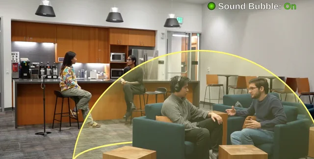 У ресторані або на вечірці фоновий шум може заважати чути розмову людей, навіть тих, що знаходяться близько. Але незабаром ми зможемо носити навушники, які використовуватимуть ШІ для фільтрації шуму на невеликій відстані, створюючи "звукову бульбашку", що дає змогу зосередитися на власній розмові.