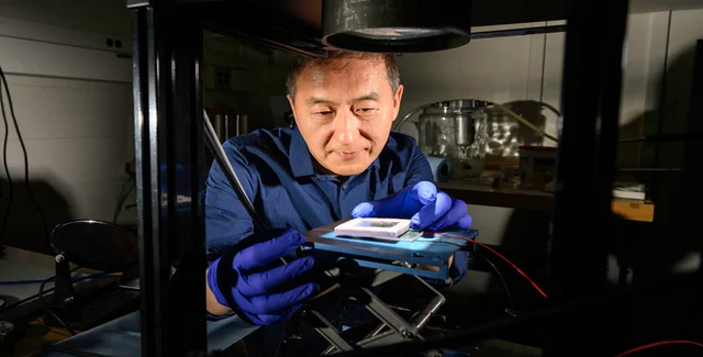 Професор Рочестерського університету Чуньлей Го тестує сонячний термоелектричний генератор | Фото: University of Rochester