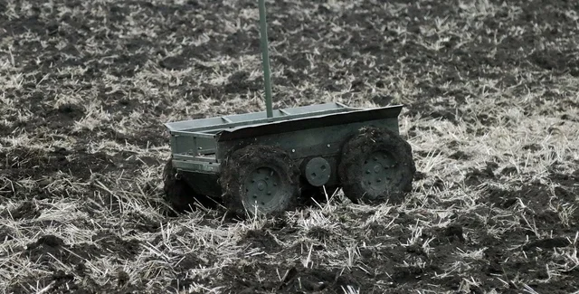Кадри роботи українського наземного робота-камікадзе було опубліковано в Telegram-каналі WarArchive.