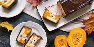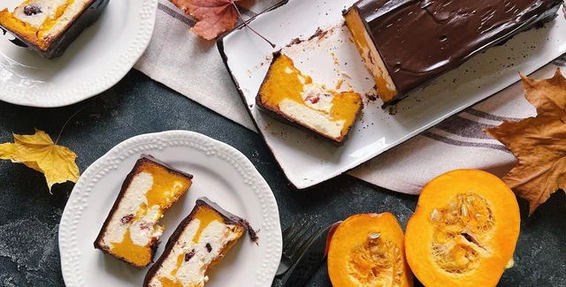 Форму, як для кексу, вистеліть пергаментом і викладайте сирну масу та гарбузове пюре по черзі, не змішуючи. Тоді в розрізі запіканка вийде яскравою та красивою.