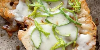 Поки капуста запікається, натерти моцарелу і нарізати зелень. Вийняти капусту з духовки, посипати подрібненим сиром та зеленню і знову відправити запікатися приблизно на п'ять хвилин.