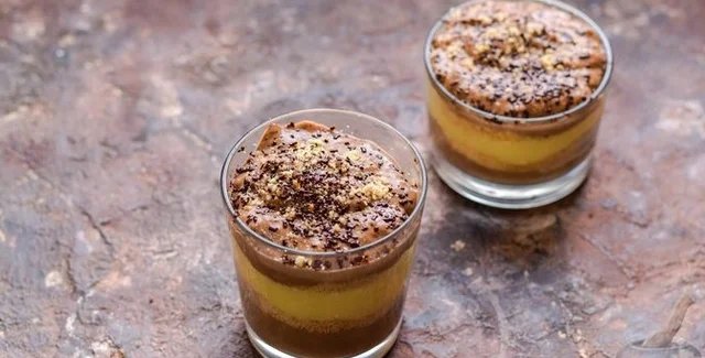 Розкладіть шоколадний мус по стаканчиках із желе. І відправте десерт у холодильник ще години на три, щоб він добре охолонув.