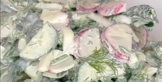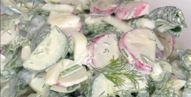 Для салату можна взяти такі інгредієнти: шпинат, дайкон, білки з варених яєць, редис, огірок, шніт-цибуля. Що стосується помідорів, то з ними ця заправка не буде настільки виграшною, як з іншими овочами чи зеленню, але як експеримент можна звичайно спробувати.