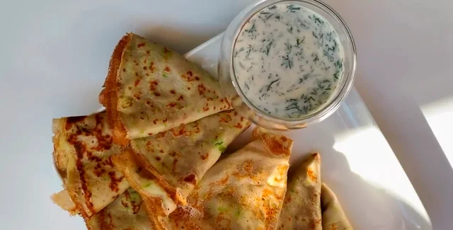 І до таких млинчиків чудово підійде соус із часником і кропом. Ви можете приготувати його на свій смак, прибравши звідти ті інгредієнти, які вам не до душі.