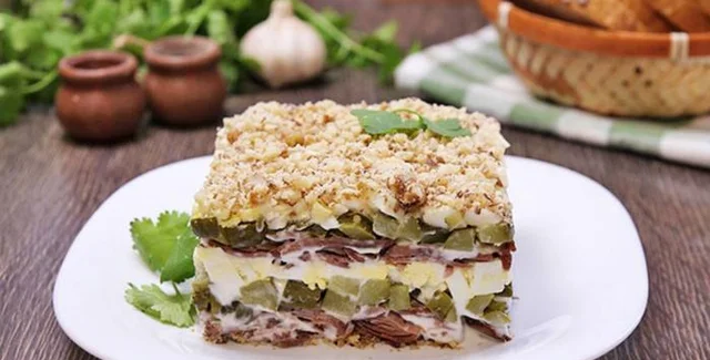Продовжуючи тему смачних і поживних салатів, не можемо залишити поза увагою рецепт із блогу "Рецепты каждый день", де розповідається, як приготувати салат "Принц", у складі якого є яловичина, солоні огірки та горіхи, що на виході дає приголомшливо цікавий смак. Рекомендуємо готувати його не тільки до приходу гостей, а й для того, щоб потішити себе та близьких.