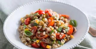 Салат із перловки з сумішшю овочів та бобових — апетитна та повноцінна страва. Це смачна альтернатива салатам із рисом, чи макаронами. І його можна доповнювати улюбленими інгредієнтами та сезонними овочами.