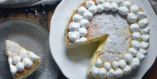 Коли ви отримаєте прозору і пінисту масу, додавайте потроху просіяне борошно і крохмаль, продовжуючи працювати, щоб вони ідеально змішалися. Перекласти суміш у змащену олією і посипану борошном роз'ємну форму діаметром 21 см і поставити в попередньо розігріту до 180 градусів духовку на 25-35 хвилин.