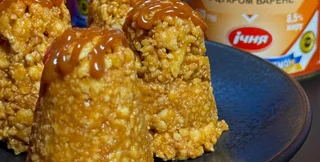 Готові тістечка можна прикрасити зверху вареним згущеним молоком або розтопленим шоколадом.