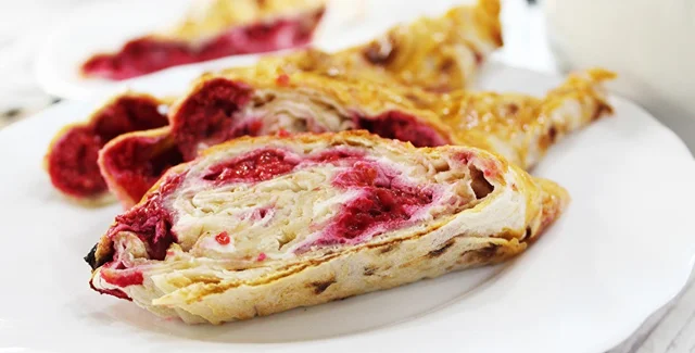 Рулети з лаваша з трьома різними солодкими начинками – це ідеальне рішення для швидкого десерту до святкового столу. Для приготування нам знадобиться: лаваш, малина, сир, сметана, цукор. Тобто найпростіші інгредієнти. Можна взяти не тільки малину, а й інші ягоди, чи соковиті фрукти. Тільки поріжте їх шматочками. Рецептом поділились на сайті Filizhanka.