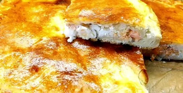 Таке тісто підходить як для пирогів, так і для пиріжків. Якщо ви вирішили зробити пиріг, то начинка для нього підійде будь-яка. Тісто розділити на дві частини: одна більша, інша менша. Ту, що більша, розкачати, викласти на дно форми, сформувати подовжені бортики. На середину викласти нанинку, накрити зверху другою частиною тіста, розкачаною в пласт, защипнути краї. Змастити пиріг збитим яйцем.