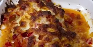 Накрити форму фольгою і запікати приблизно 25–30 хвилин у духовці, розігрітій до 180 градусів. За 5 хвилин до готовності зняти фольгу і дати страві підрум'янитися.